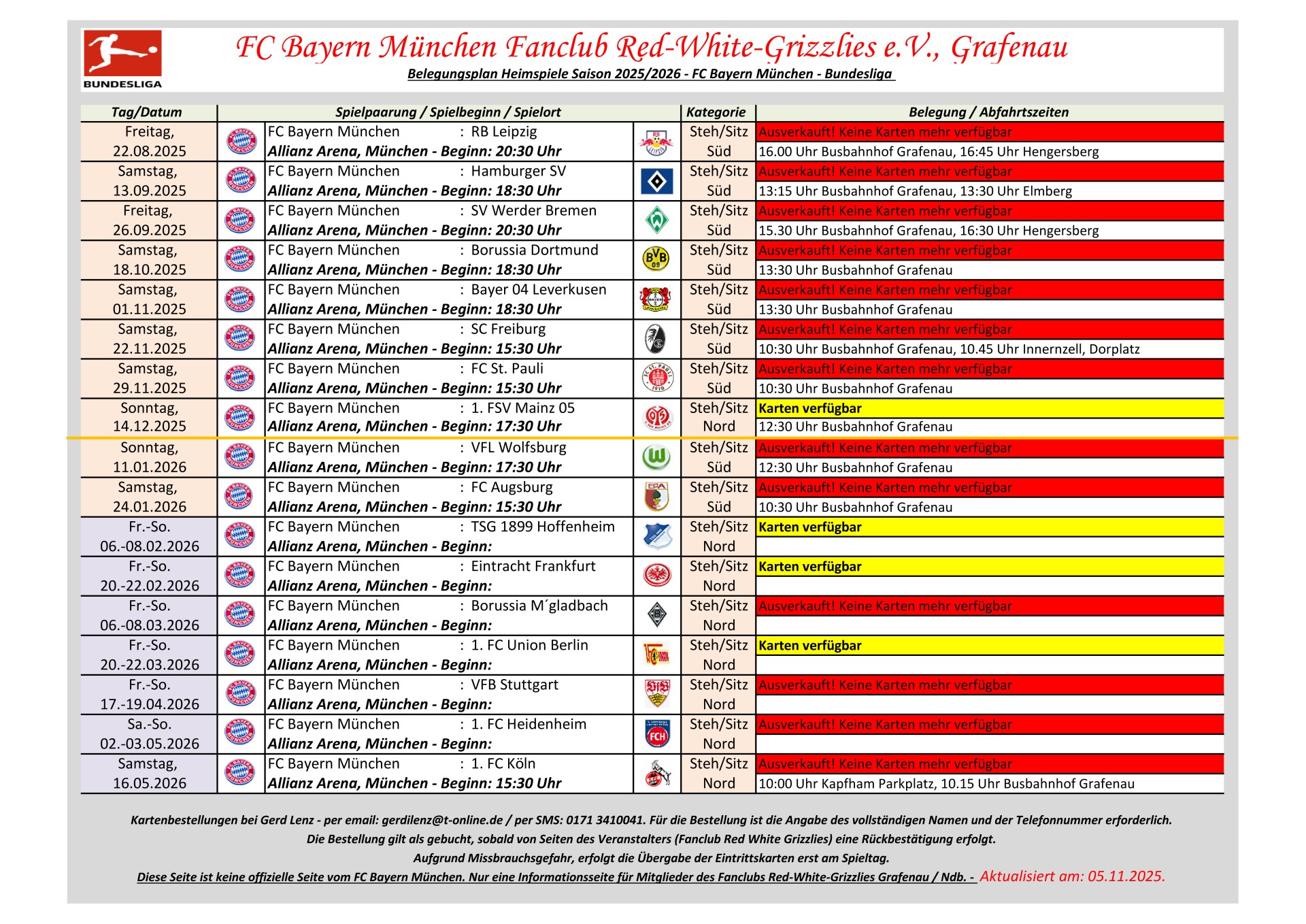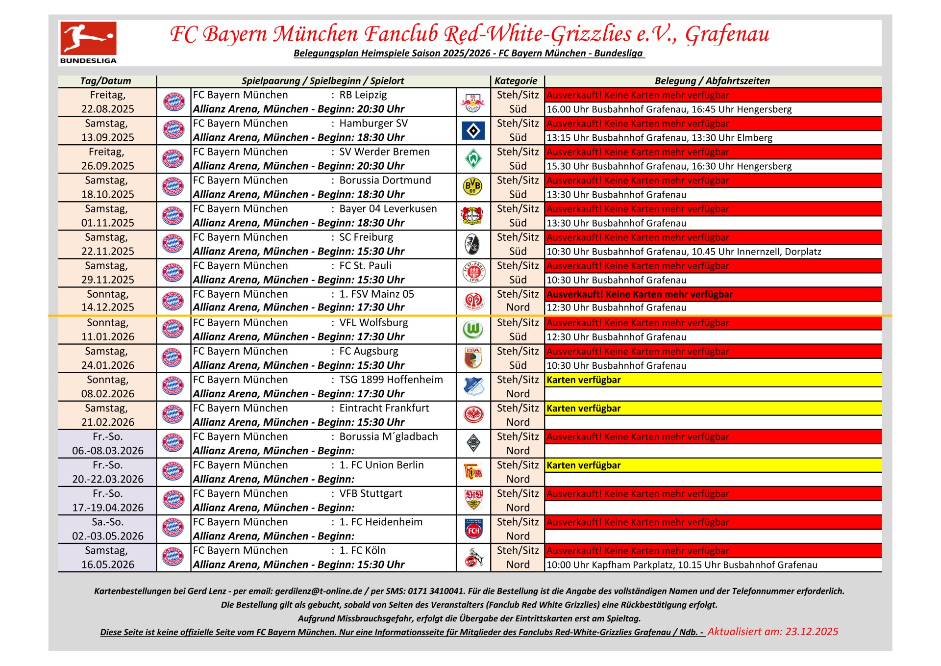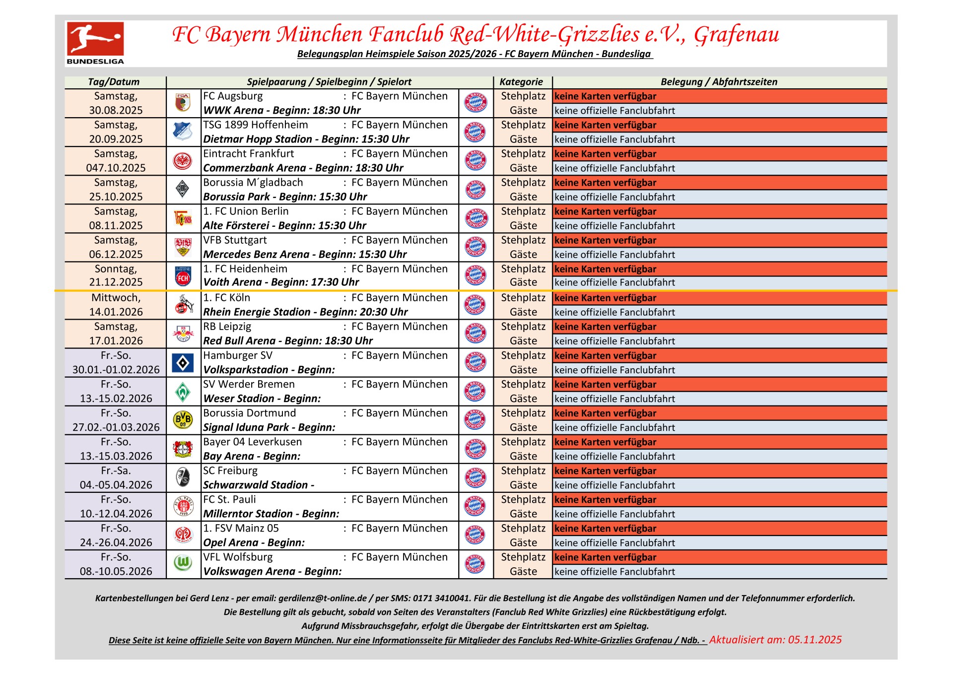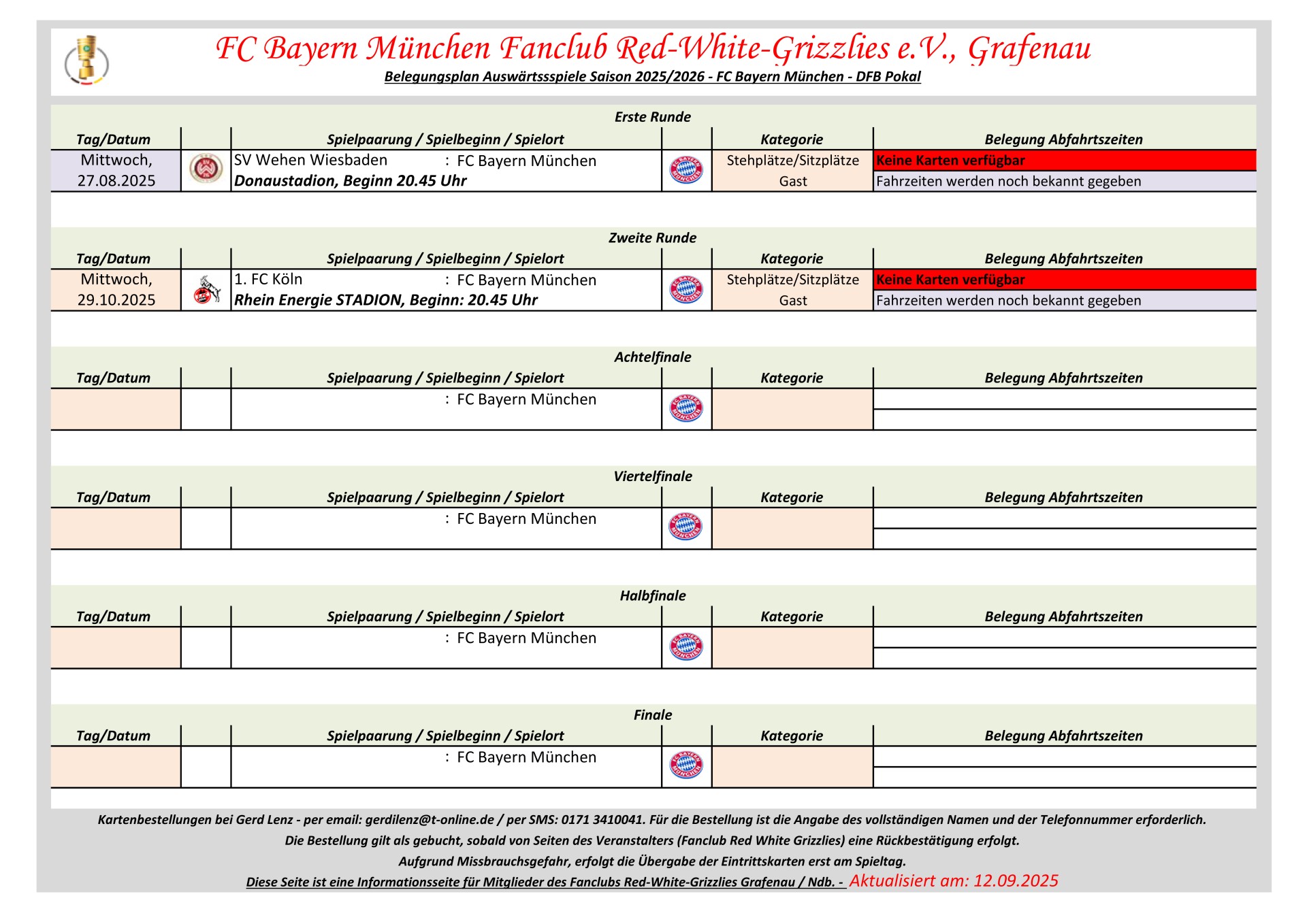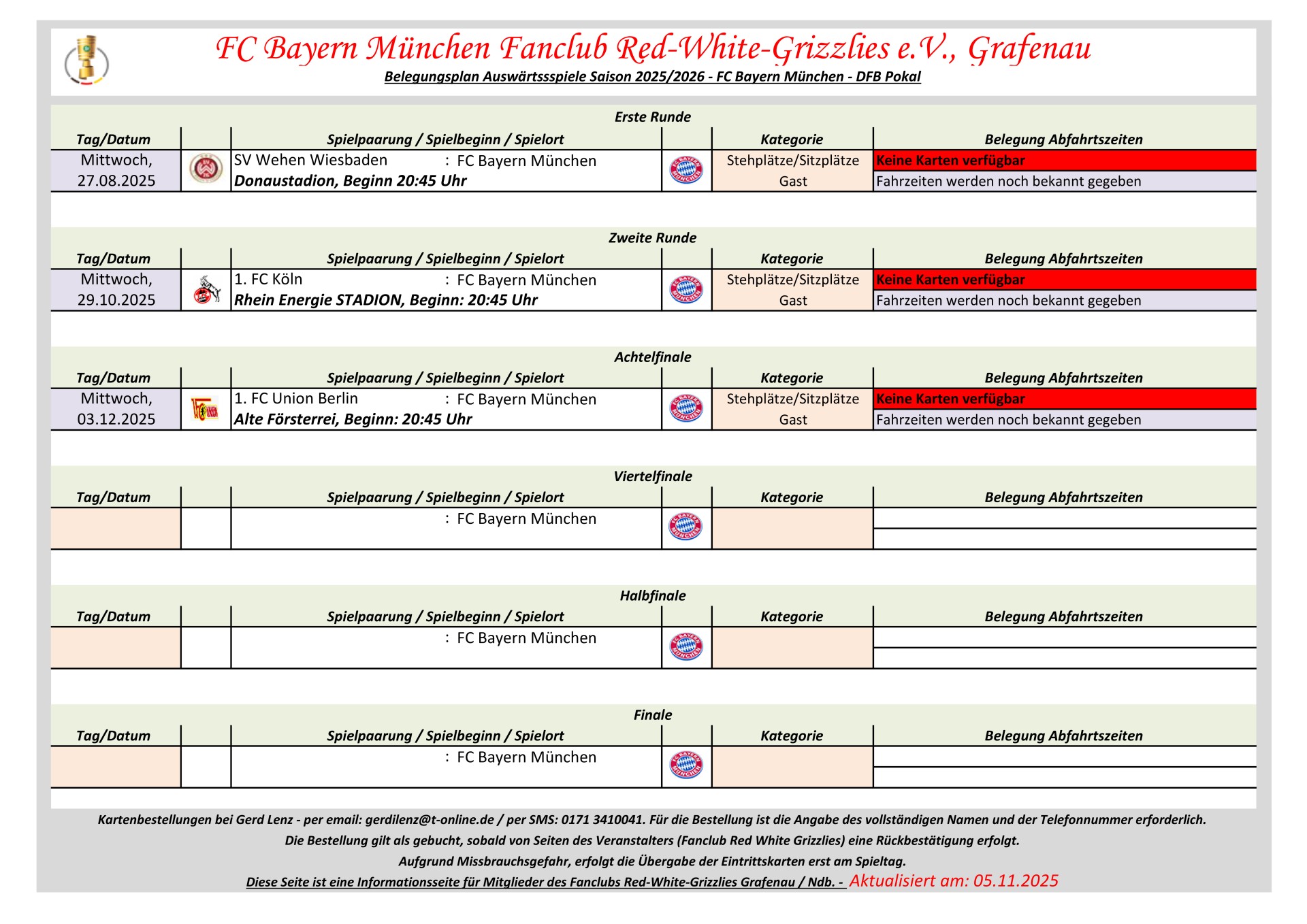 Aufgrund Missbrauchsgefahr erfolgt die Kartenaushändigung erst im Fanbus am jeweiligen Spieltag.